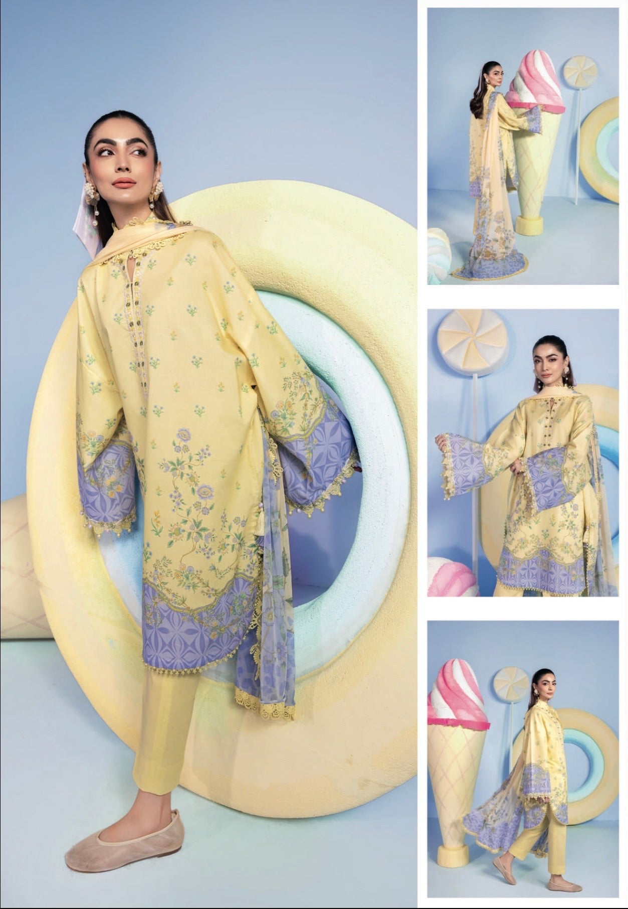 3 Pc Unstitched Embroidered Lawn Suit | m/basics BY MARIA.B