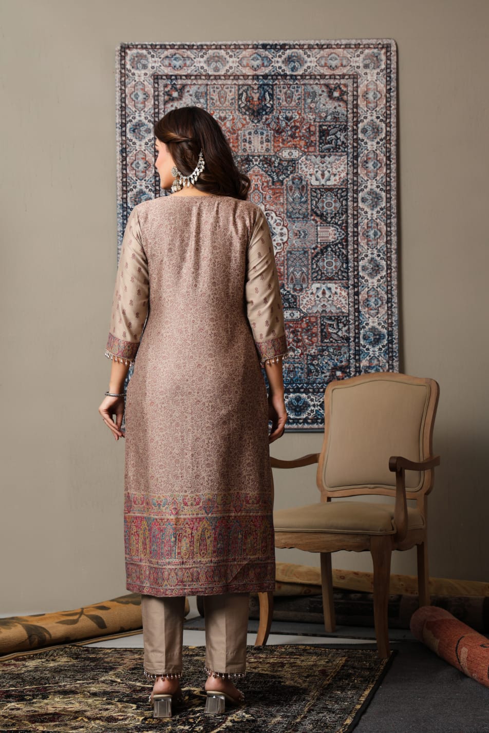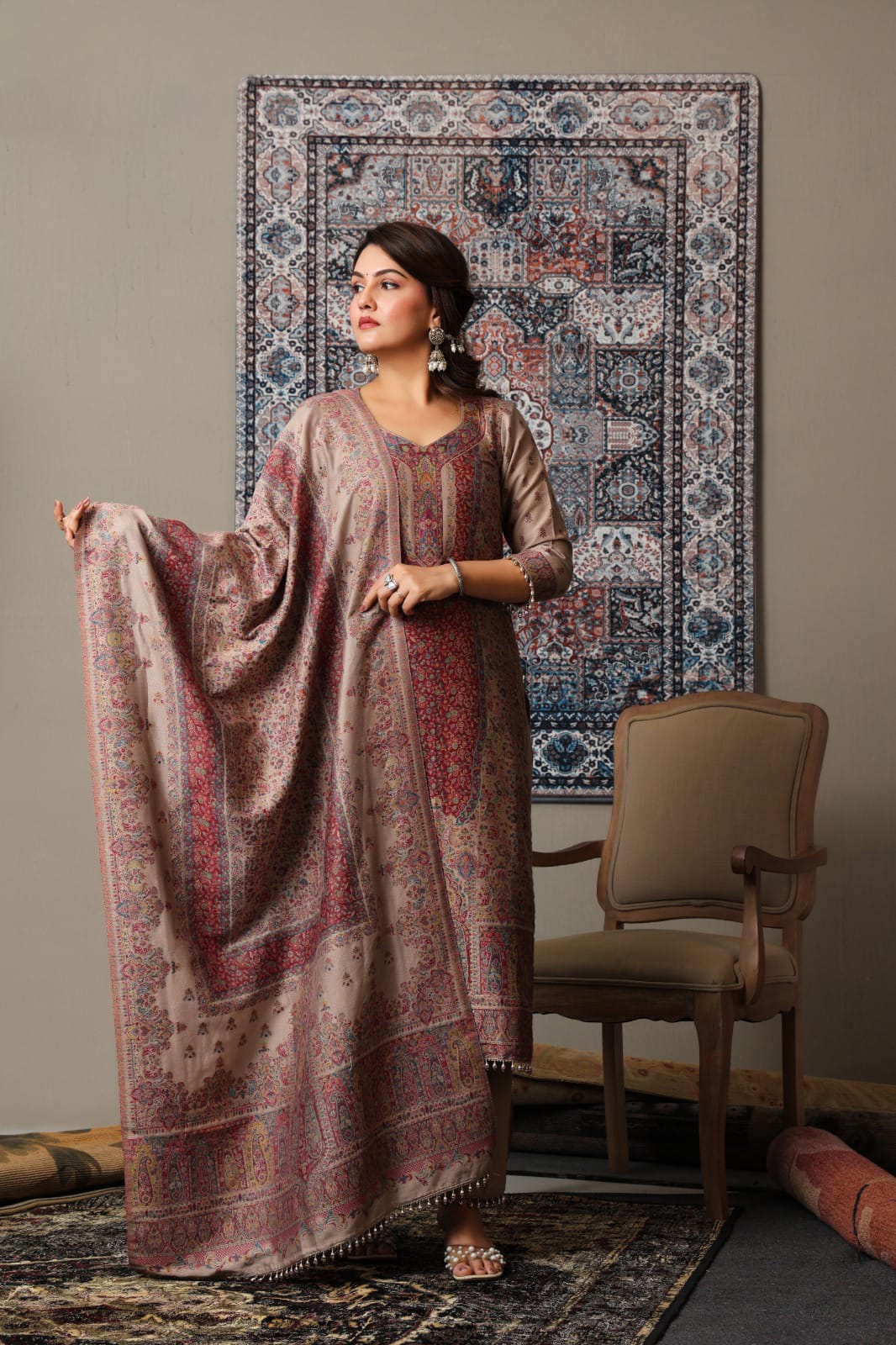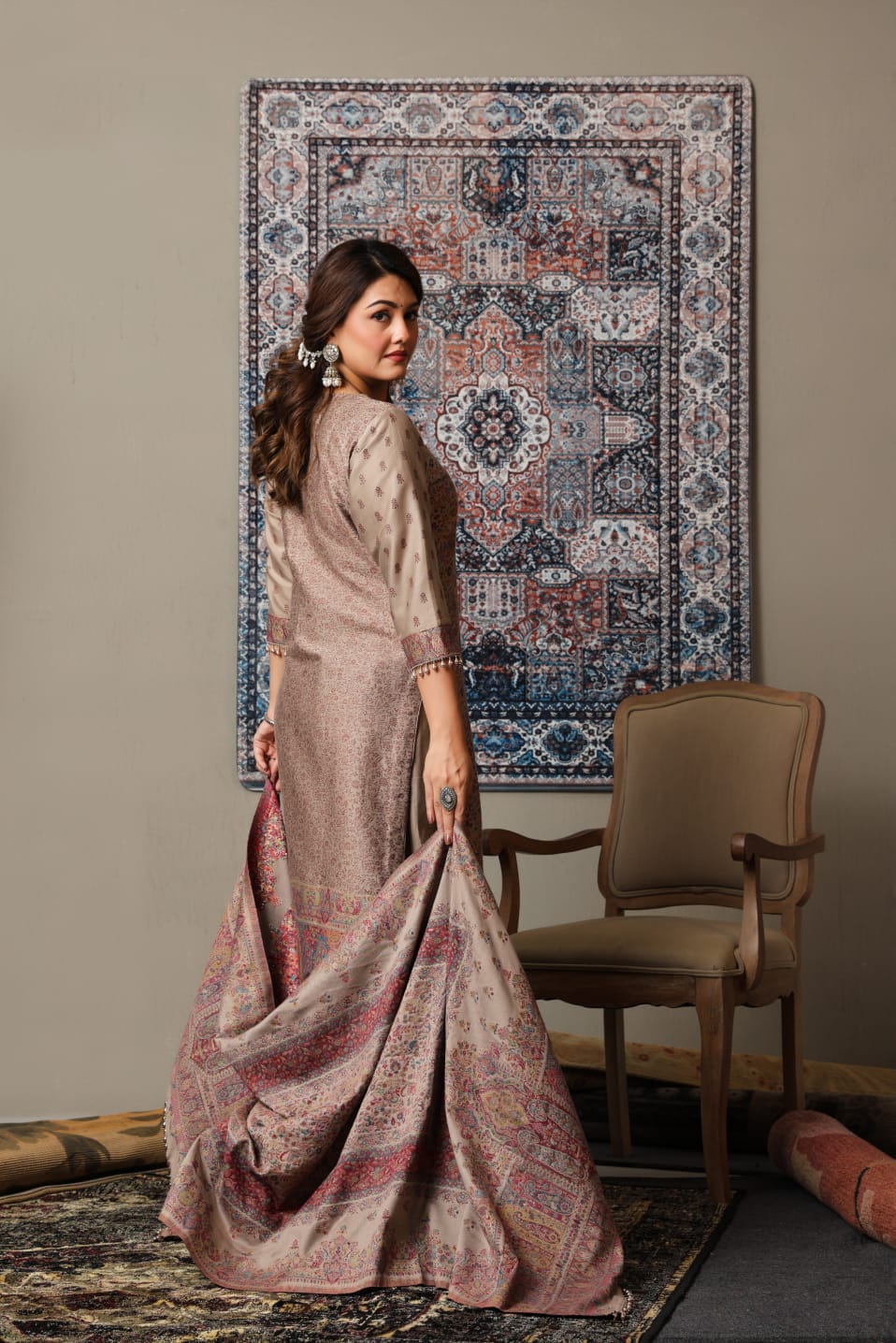 A Premium Kaani Weaving Jamawar Collection on Pure Silk Pashmina . Indulge in the grandeur of tradition with our exclusive Kaani Weaving Jamawar Collection, masterfully crafted on the finest pure silk pashmina. Each piece is a celebration of heritage, where centuries-old weaving techniques meet timeless artistry.