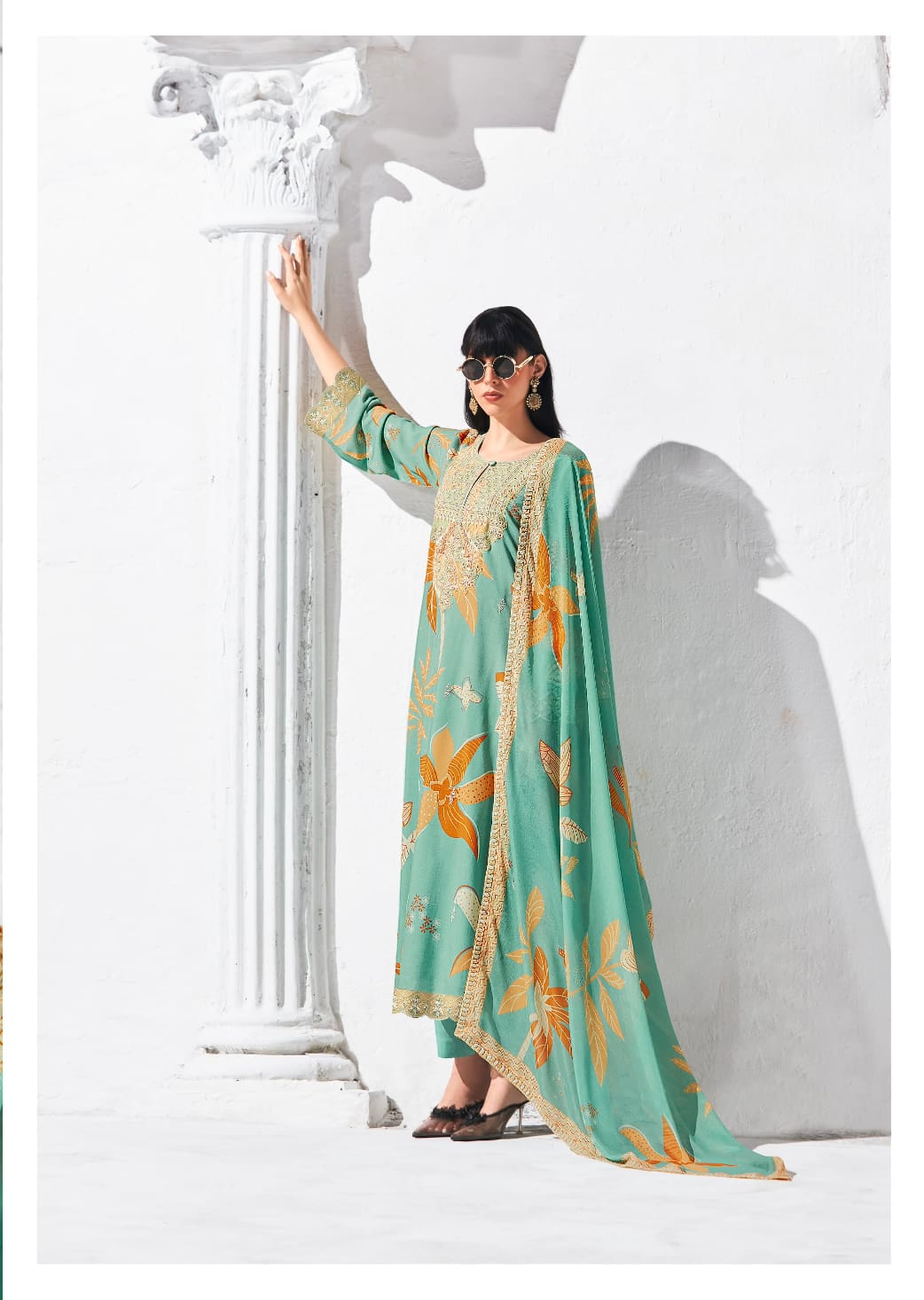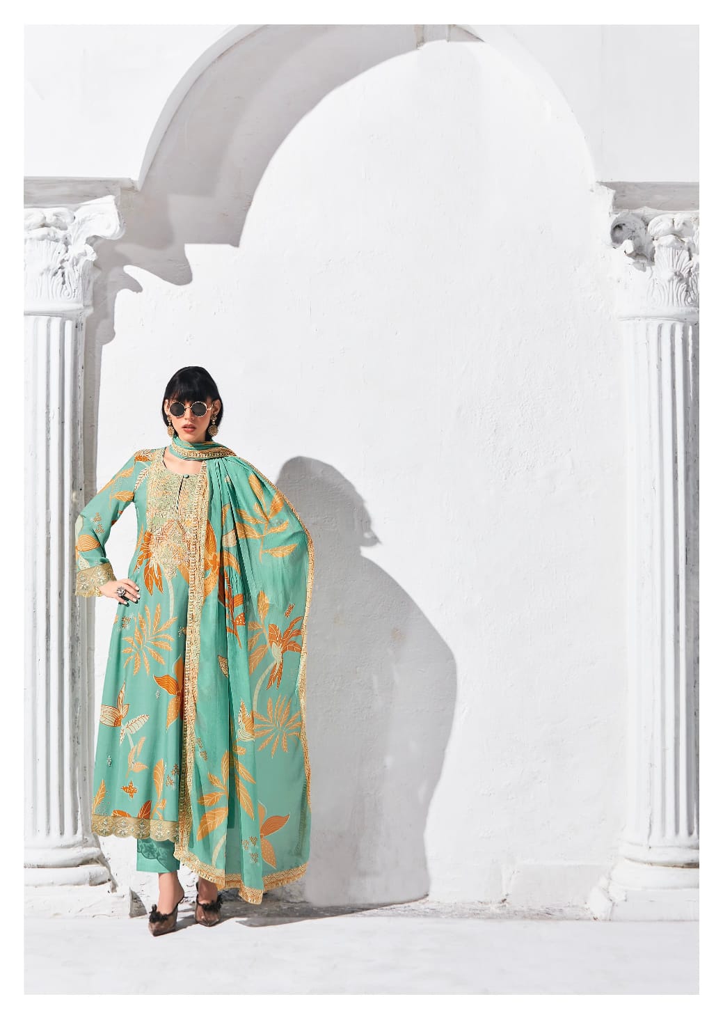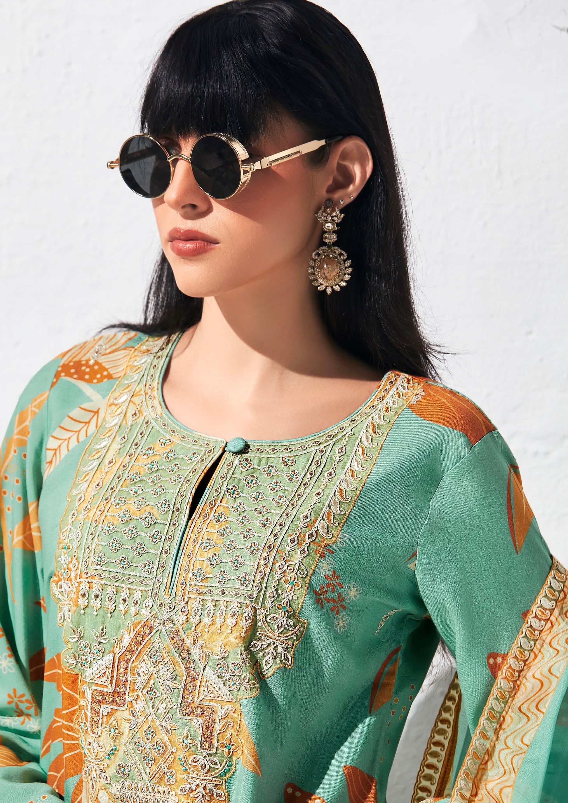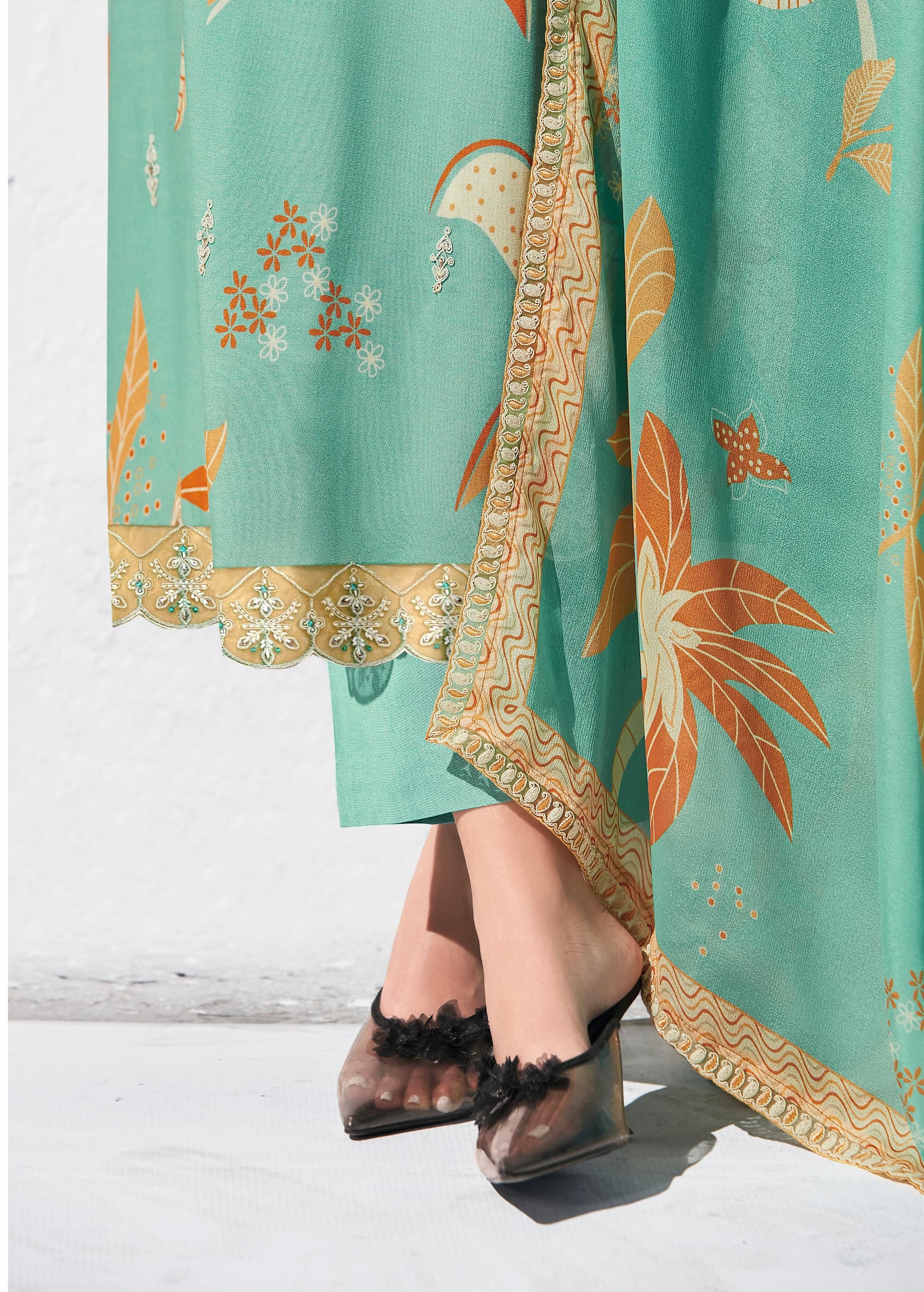Pure Pashmina Digital Print, Dori Embroidery Appliqué Neckline, Scalloped Dori Embroidery Border Hemline and Sleeves