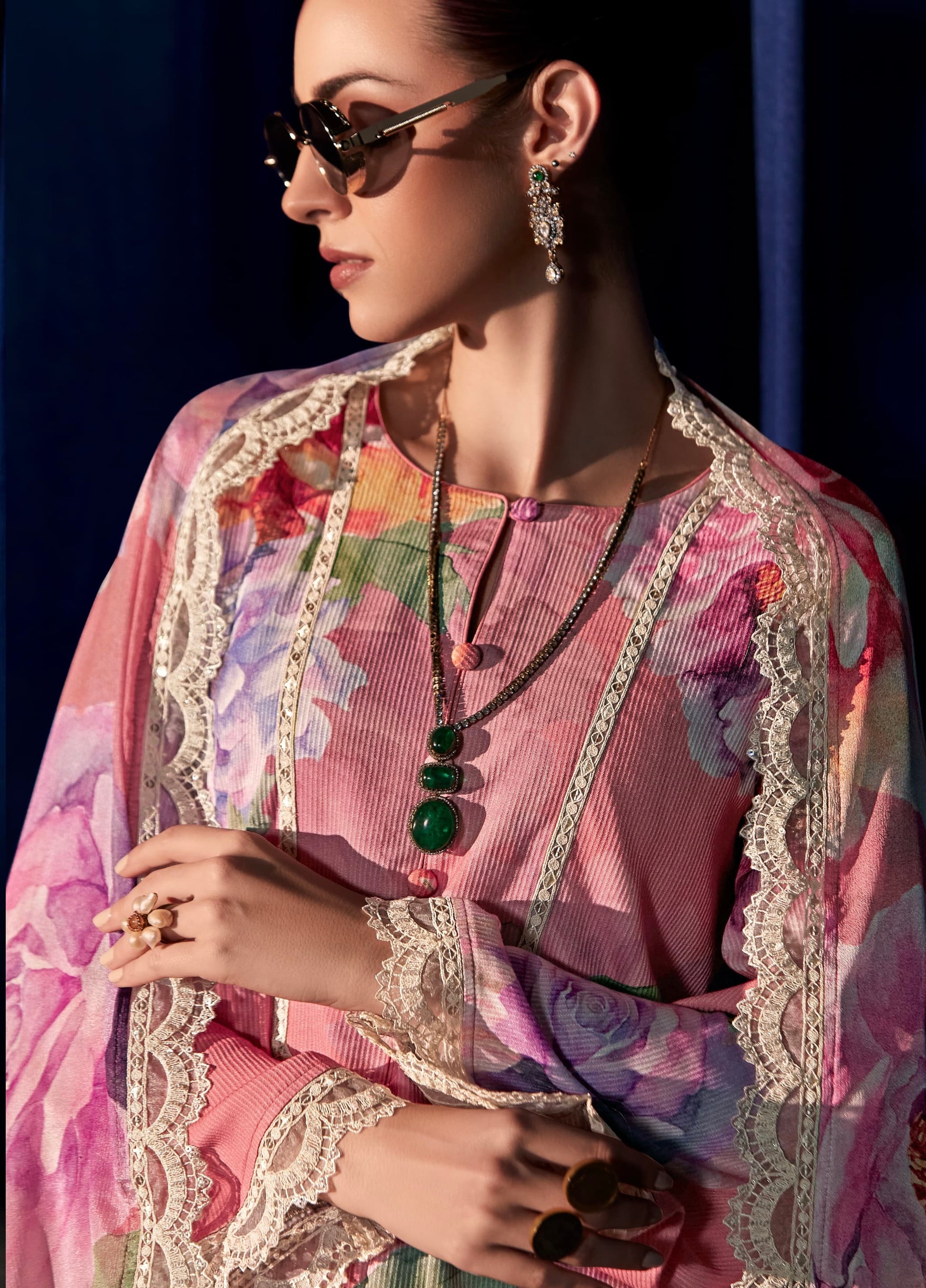 Pure Chinnon with digital print and scalloped embroidery border four side