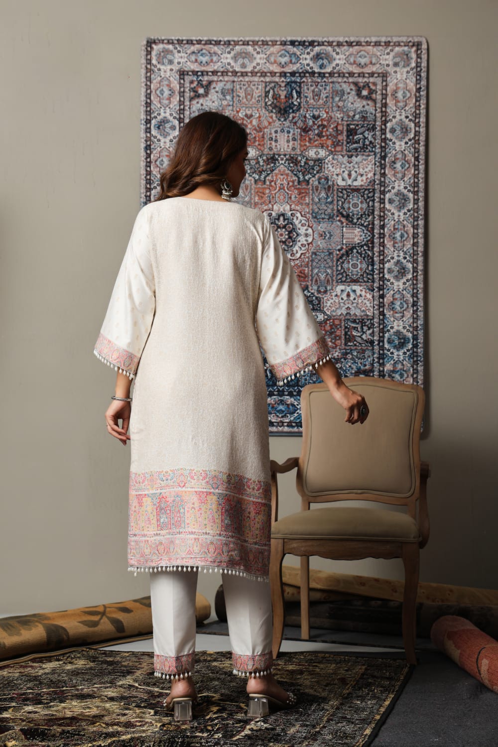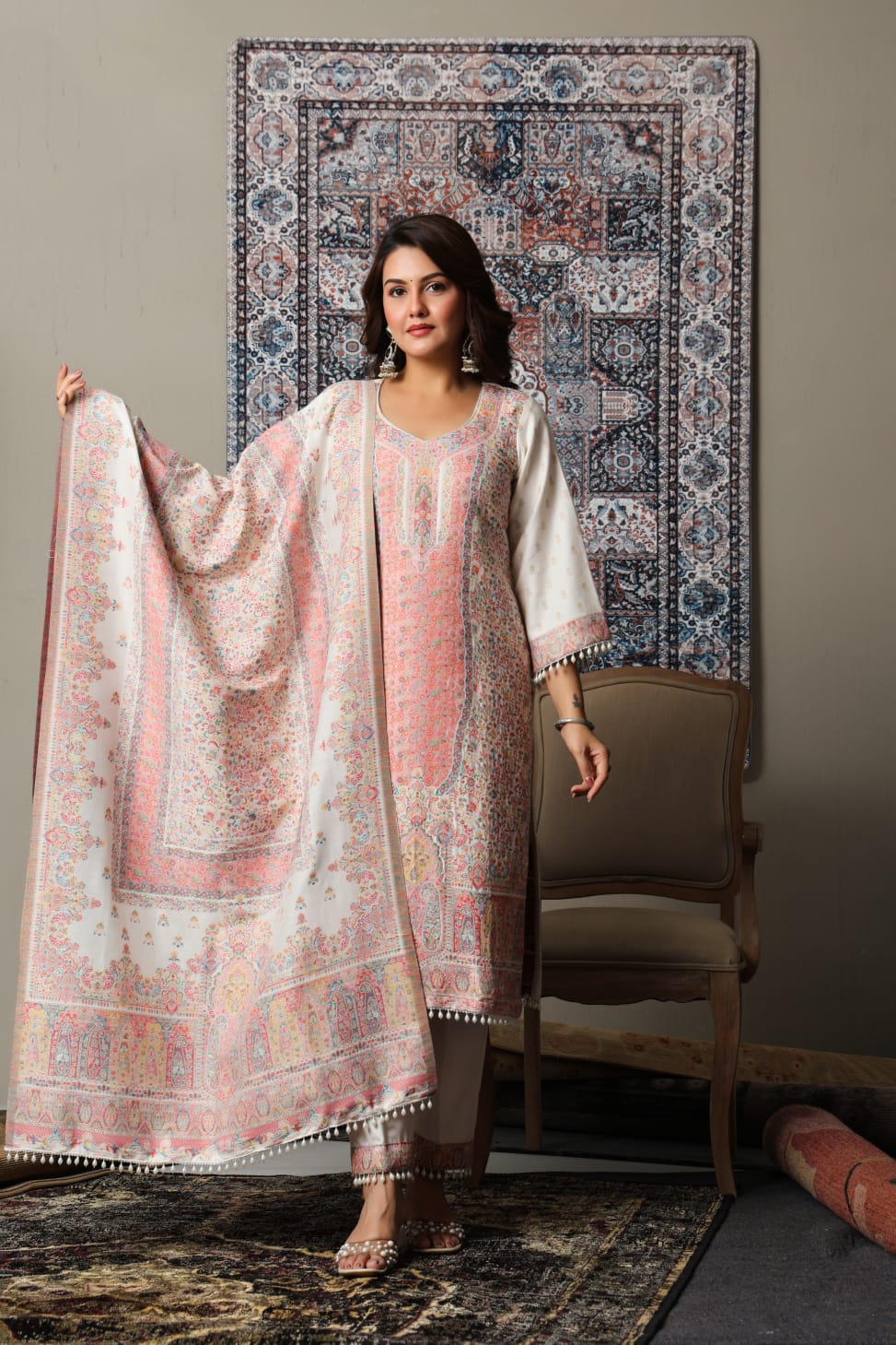 A Premium Kaani Weaving Jamawar Collection on Pure Silk Pashmina . Indulge in the grandeur of tradition with our exclusive Kaani Weaving Jamawar Collection, masterfully crafted on the finest pure silk pashmina. Each piece is a celebration of heritage, where centuries-old weaving techniques meet timeless artistry.