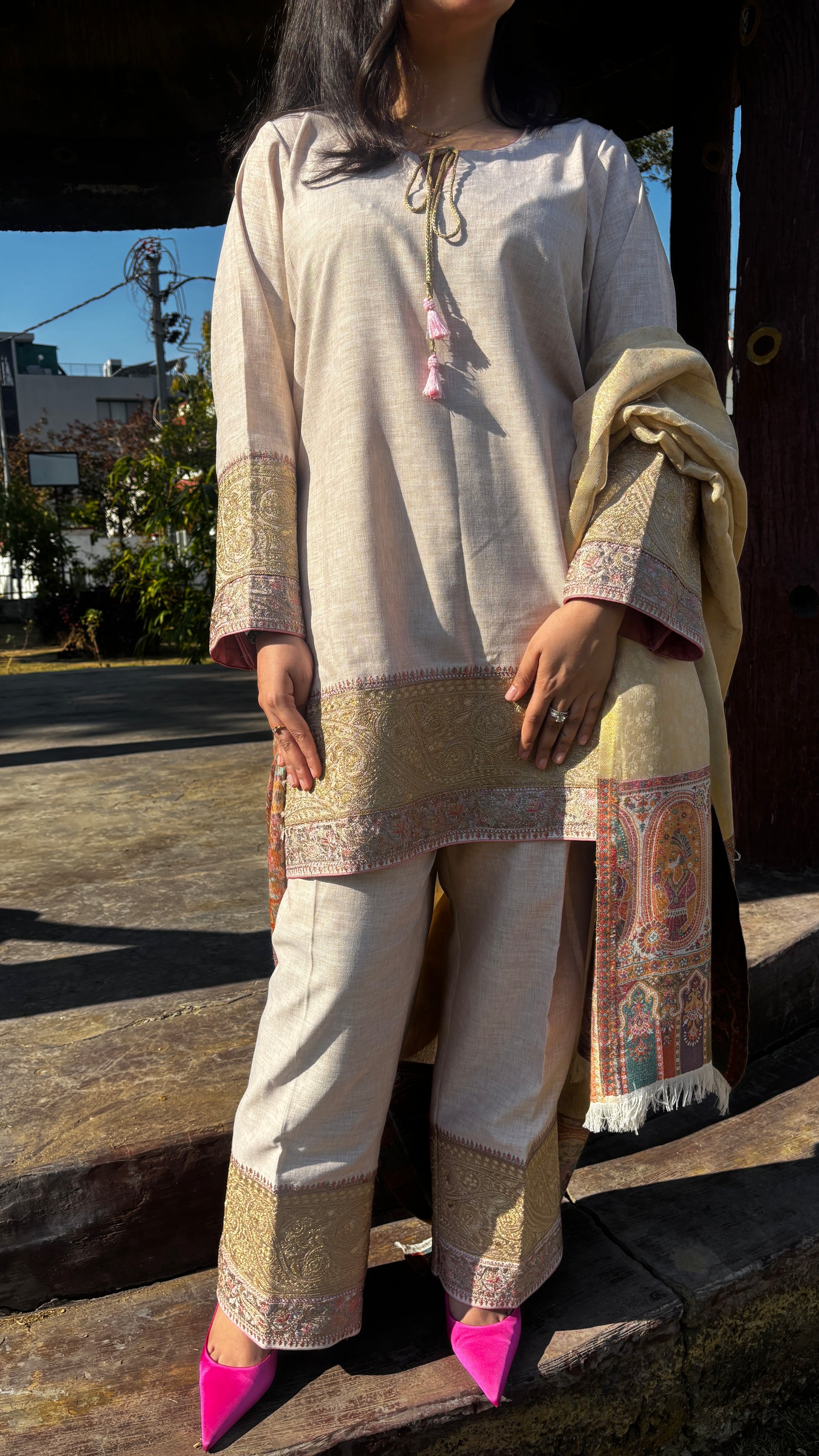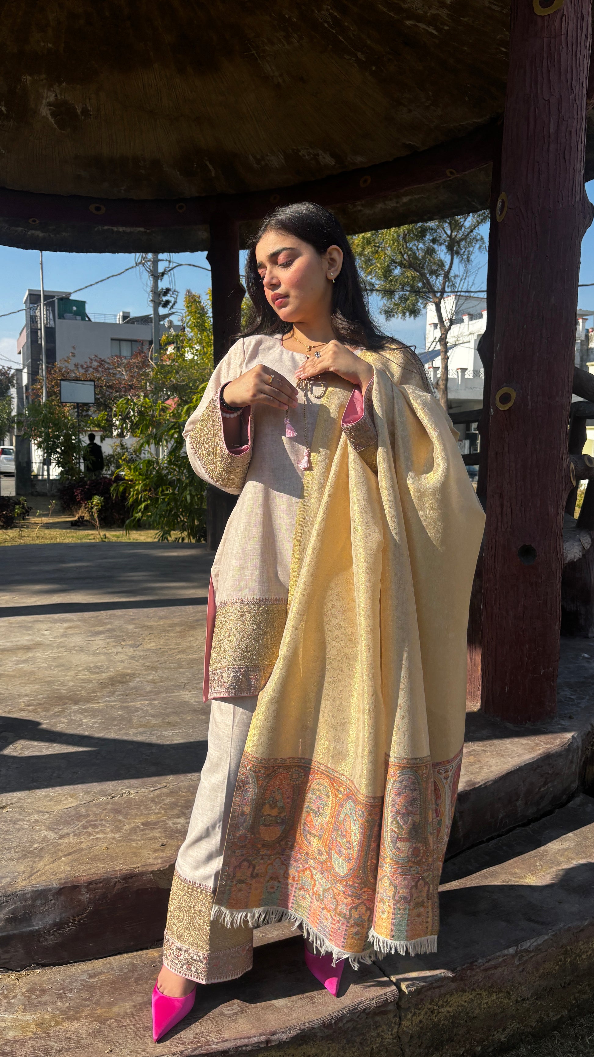 Kashish is a refined expression of elegance, crafted in luxurious semi pashmina fabric that feels soft, warm, and effortlessly graceful on the skin.