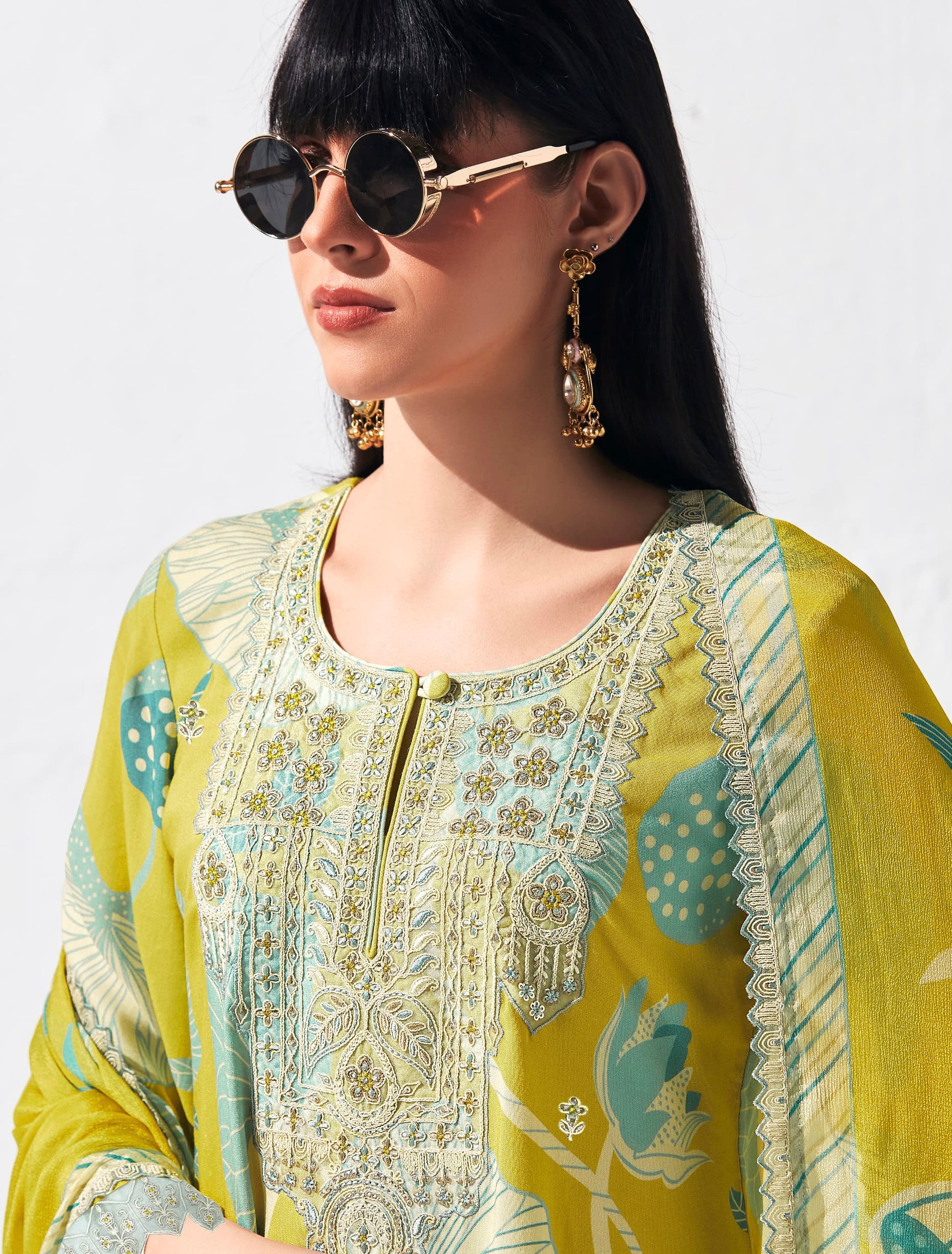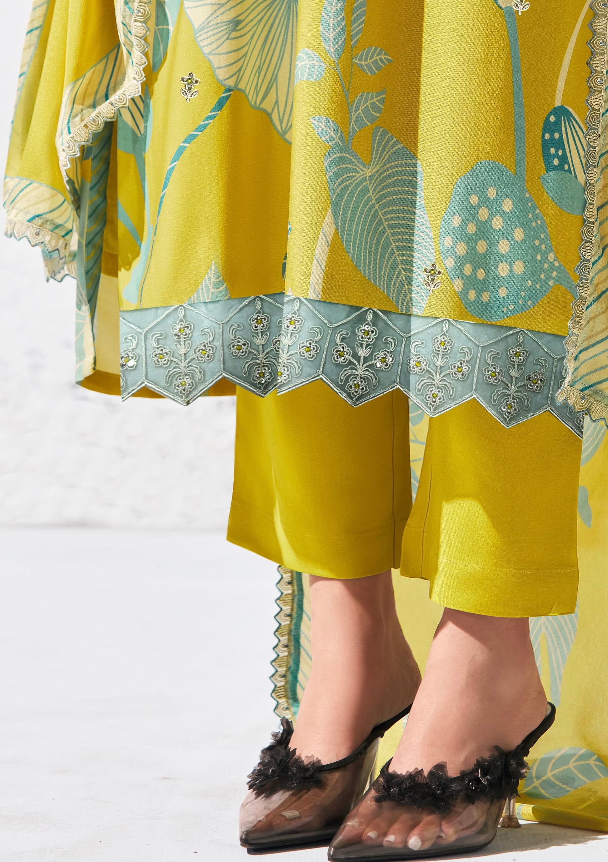 Pure Pashmina Digital Print, Dori Embroidery Appliqué Neckline, Scalloped Dori Embroidery Border Hemline and Sleeves