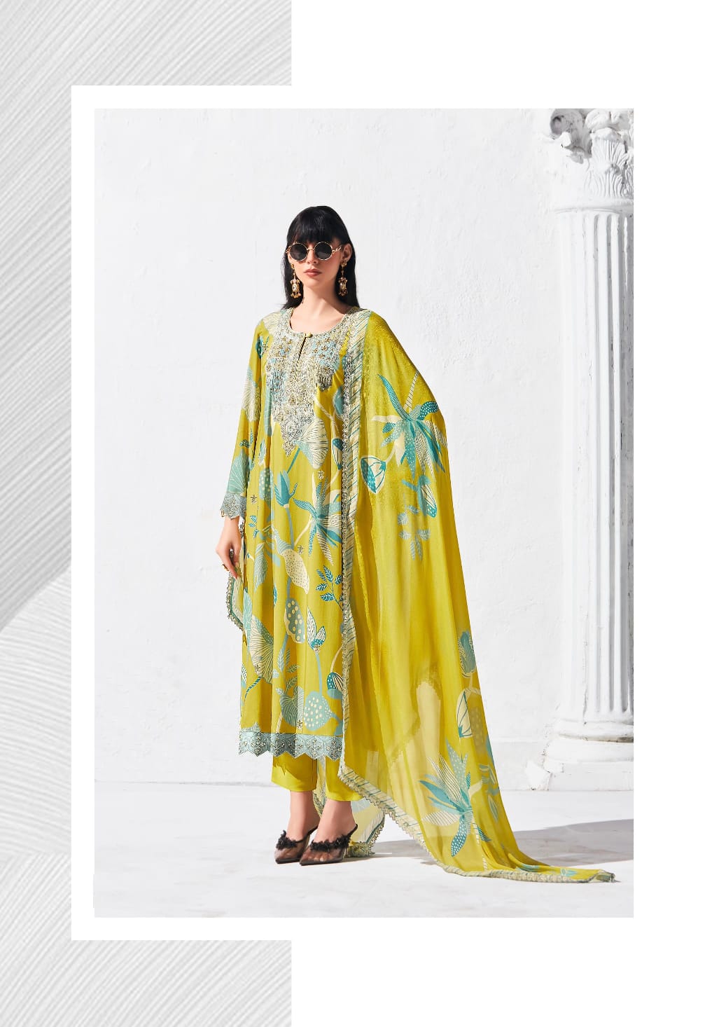 Pure Chinnon Digital Print with Dori Embroidery Scalloped Border