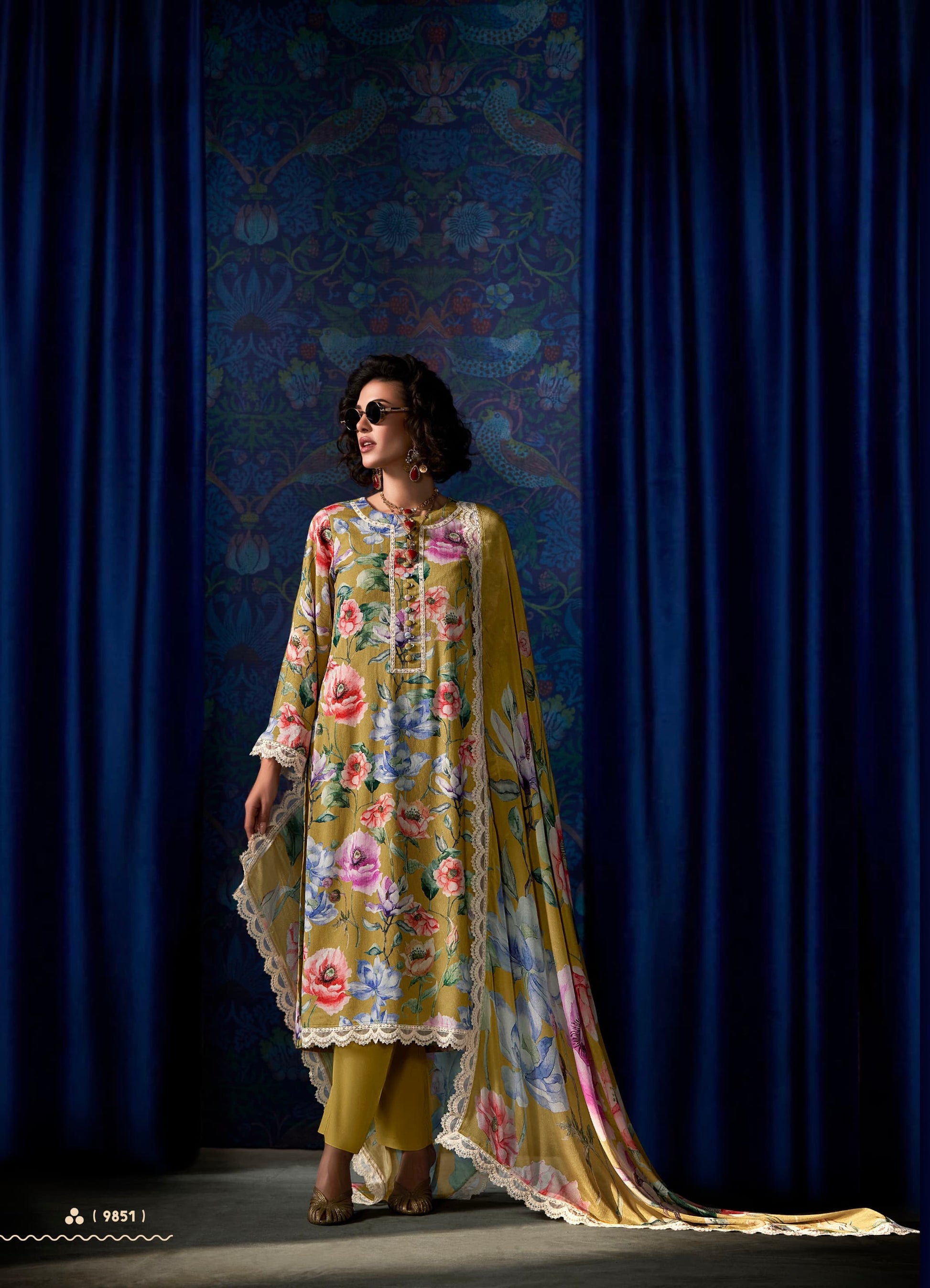 Pure Chinnon with digital print and scalloped embroidery border four side