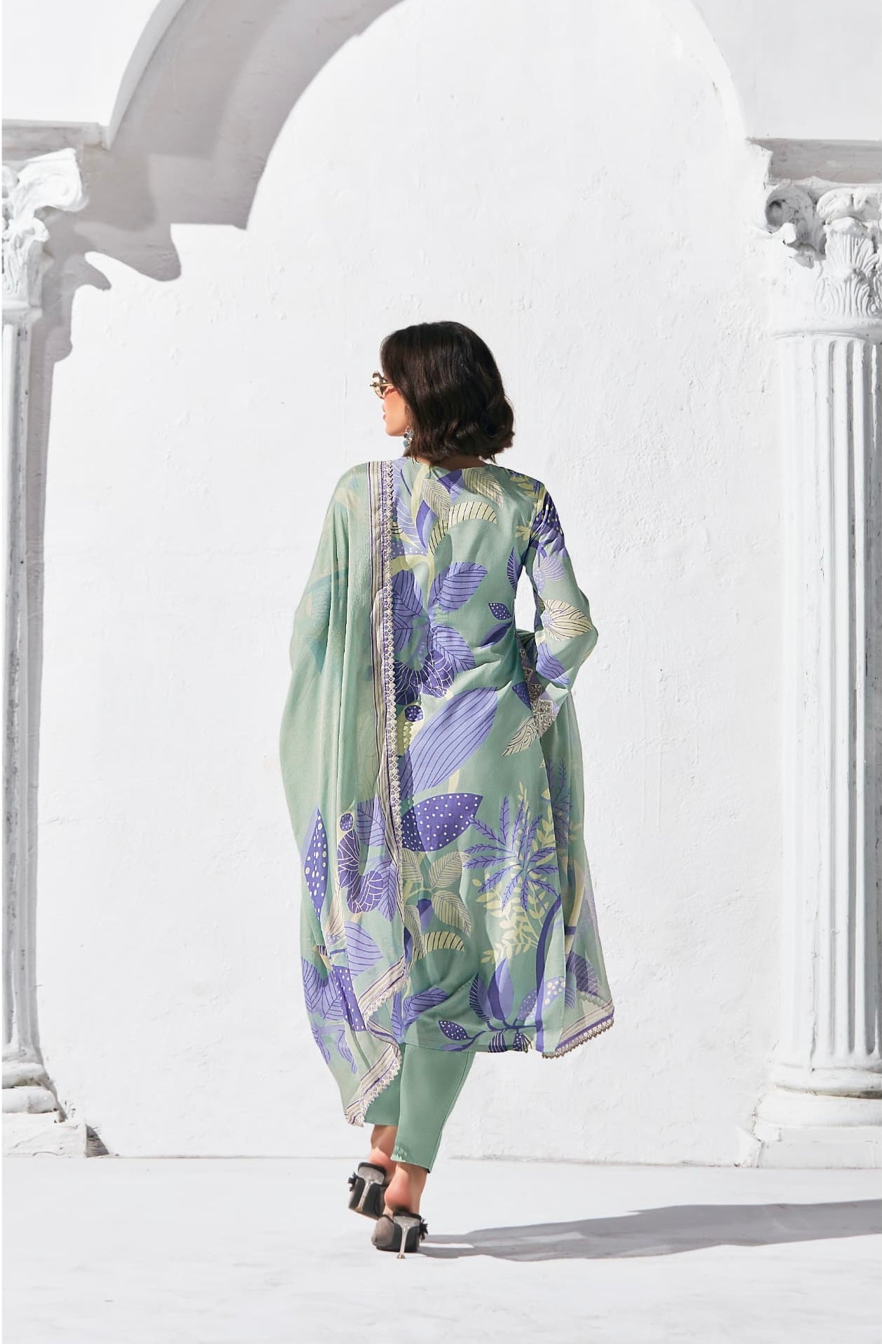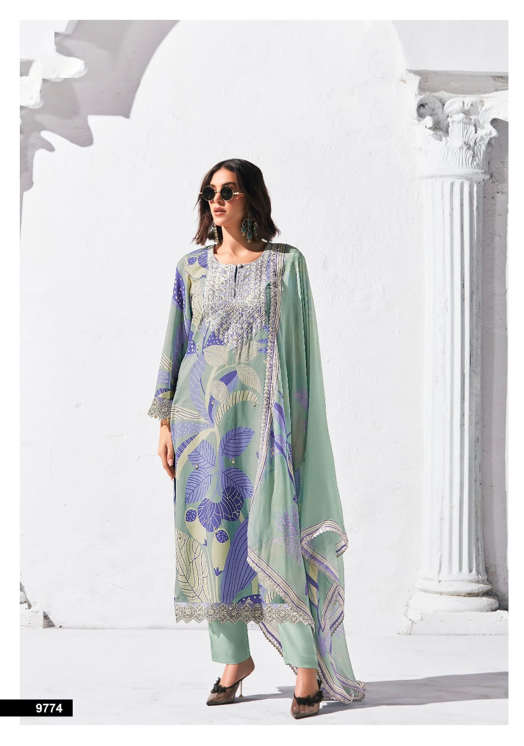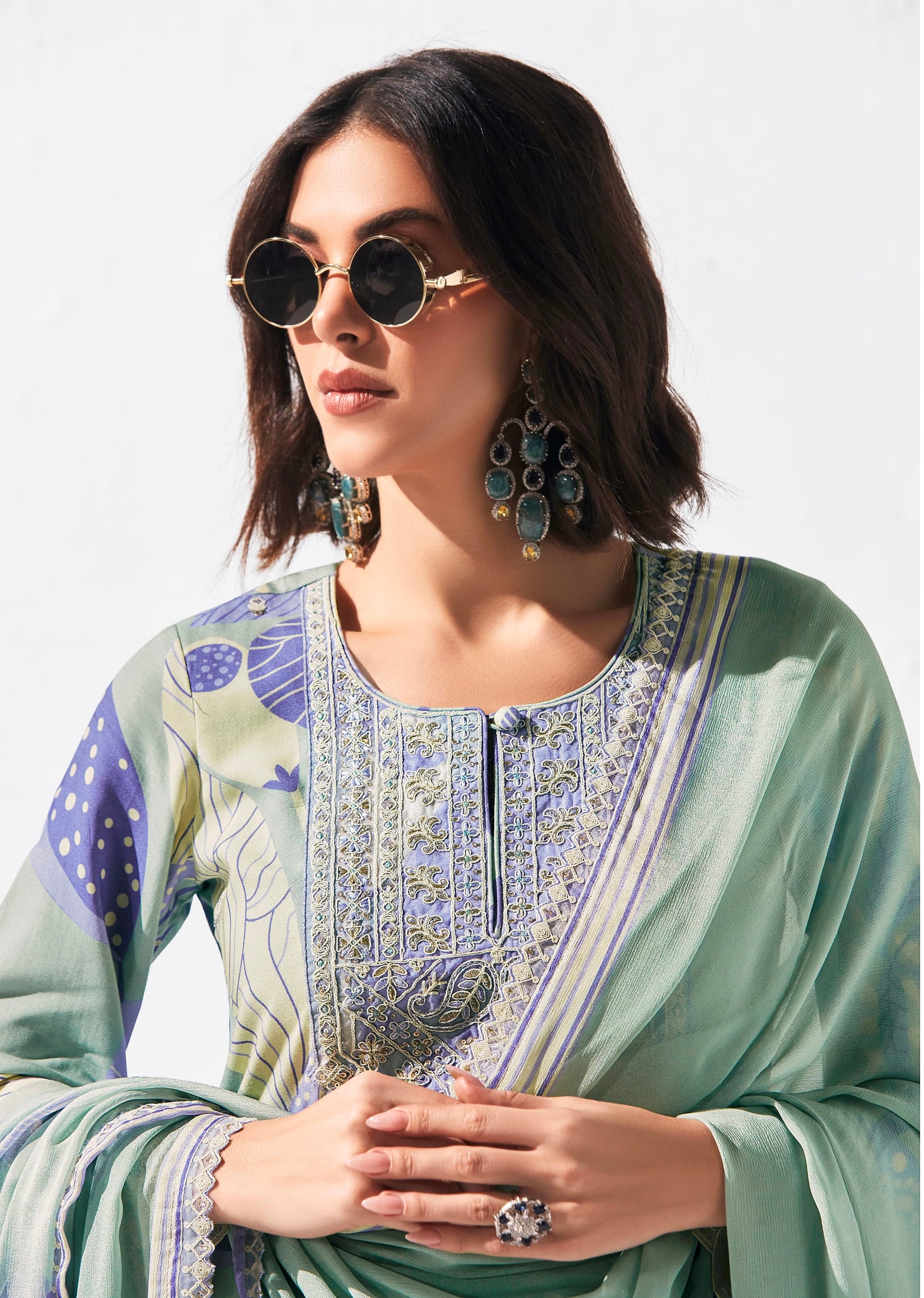 Pure Pashmina Digital Print, Dori Embroidery Appliqué Neckline, Scalloped Dori Embroidery Border Hemline and Sleeves