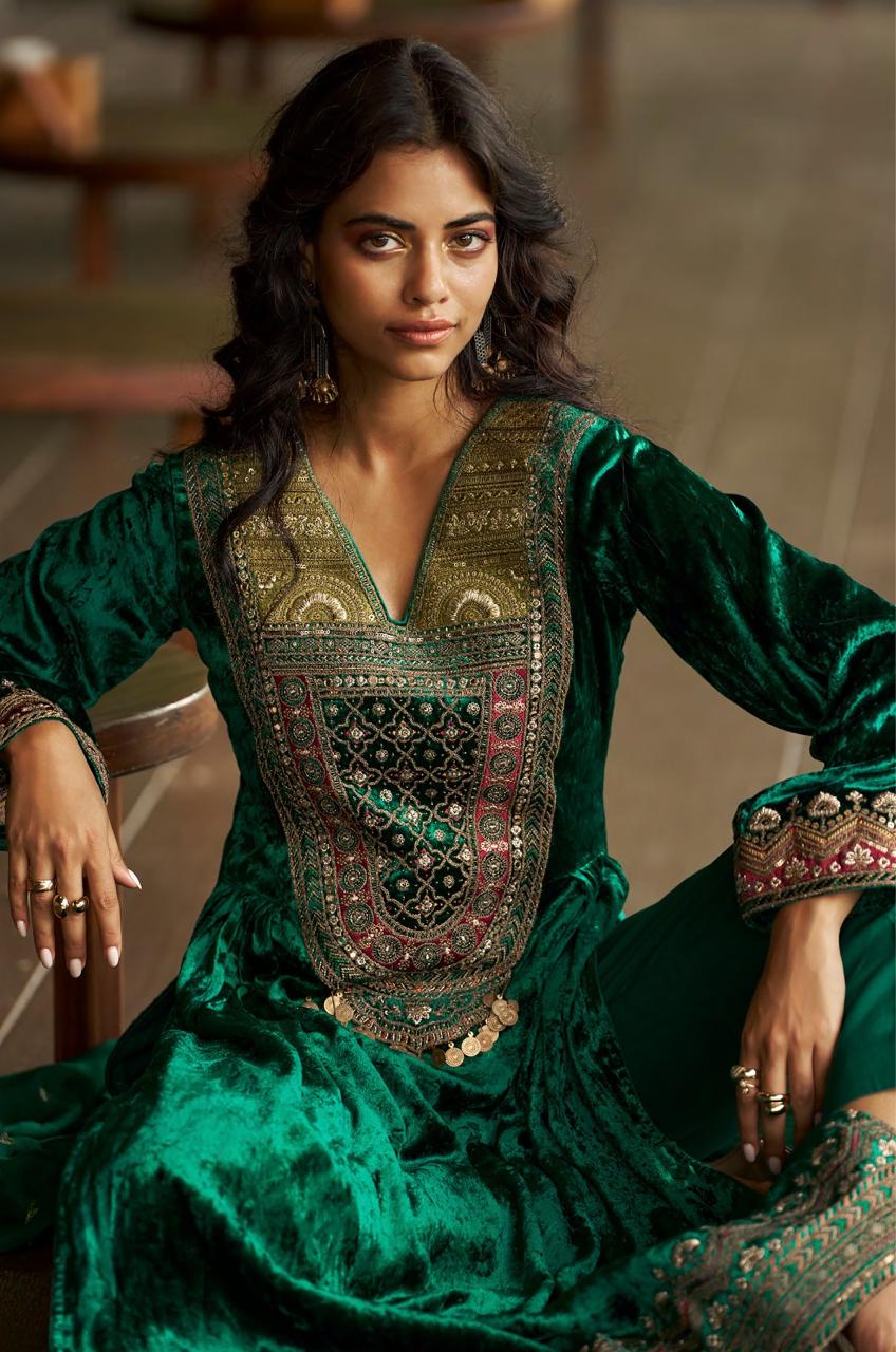 Pure Viscose Velvet with Fancy Work with Handwork.