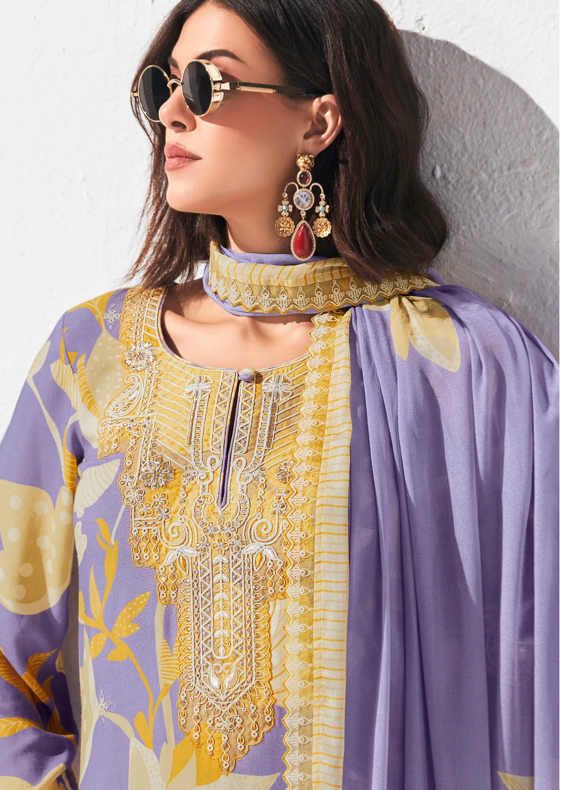 Pure Pashmina Digital Print, Dori Embroidery Appliqué Neckline, Scalloped Dori Embroidery Border Hemline and Sleeves